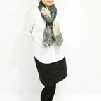 ほどよい厚みで、ボリューム感を出すことができます。軽いので肩がこることもありません。もちろん、巻き方次第でシャープな印象を作ることもできます。