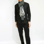 大判の長方形で、端面はナチュラルな断ち切り加工を施しています。どんな巻き方をしても表情豊かでお洒落な印象になります。また、折りたたんで使えばスッキリとシャープなシルエットになります。