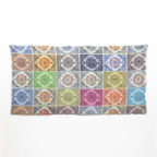 まるでアートのようなグラフィカルなデザイン。多色使いで着回しやすく、巻き方によっても表情を変えやすくなっています。
