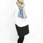 ほどよい厚みで、ボリューム感を出すことができます。軽いので肩がこることもありません。もちろん、巻き方次第でシャープな印象を作ることもできます。