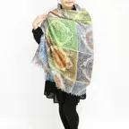 非常に大きなショールサイズで、広げて羽織れば上半身をすっぽりと覆うことができます。縦横の長さも十分にあるため、巻き方の自由度が広がります。程よいボリューム感と立体感を簡単につくることができるため、一巻きでこなれた印象になります。面積もあるので、真夏の室内での冷房対策や膝掛けとしても使いやすくなっています。