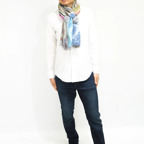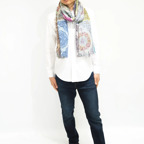 非常に大きなショールサイズで、広げて羽織れば上半身をすっぽりと覆うことができます。縦横の長さも十分にあるため、巻き方の自由度が広がります。程よいボリューム感と立体感を簡単につくることができるため、一巻きでこなれた印象になります。面積もあるので、真夏の室内での冷房対策や膝掛けとしても使いやすくなっています。