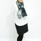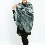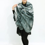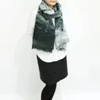 コーディネートしやすいブラック&グレイ。オンオフ問わず使いやすく、暖かい万能なウールショールです。