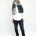 コーディネートしやすいブラック&グレイ。オンオフ問わず使いやすく、暖かい万能なウールショールです。