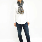 非常に大きなショールサイズで、広げて羽織れば上半身をすっぽりと覆うことができます。縦横の長さも十分にあるため、巻き方の自由度が広がります。程よいボリューム感と立体感を簡単につくることができるため、一巻きでこなれた印象になります。面積もあるので、真夏の室内での冷房対策や膝掛けとしても使いやすくなっています。