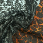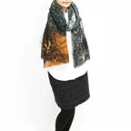 ダイナミックな柄を掛け合わせてアクセントをつけた、大人の遊び心をくすぐる一枚。左右非対称のアシンメトリーデザインで、巻き方によって表情の変化も楽しめます。