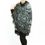 非常に大きなショールサイズで、広げて羽織れば上半身をすっぽりと覆うことができます。縦横の長さも十分にあるため、巻き方の自由度が広がります。程よいボリューム感と立体感を簡単につくることができるため、一巻きでこなれた印象になります。面積もあるので、真夏の室内での冷房対策や膝掛けとしても使いやすくなっています。