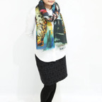 非常に大きなショールサイズで、広げて羽織れば上半身をすっぽりと覆うことができます。縦横の長さも十分にあるため、巻き方の自由度が広がります。程よいボリューム感と立体感を簡単につくることができるため、一巻きでこなれた印象になります。面積もあるので、真夏の室内での冷房対策や膝掛けとしても使いやすくなっています。
