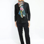 非常に大きなショールサイズで、広げて羽織れば上半身をすっぽりと覆うことができます。縦横の長さも十分にあるため、巻き方の自由度が広がります。程よいボリューム感と立体感を簡単につくることができるため、一巻きでこなれた印象になります。面積もあるので、真夏の室内での冷房対策や膝掛けとしても使いやすくなっています。