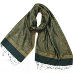 糸そのものの美しい光沢感とジャカード織機で製作された独創的なデザインが相まった他にはないシルクストールに仕上がっています。