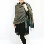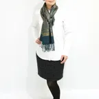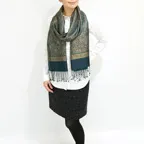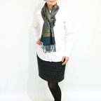 スタンダートな大判サイズで巻いても羽織っても、どちらも使いやすいタイプです。特に羽織は全体の印象が大きく変わります。
