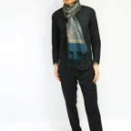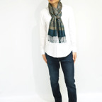 スタンダートな大判サイズで巻いても羽織っても、どちらも使いやすいタイプです。特に羽織は全体の印象が大きく変わります。