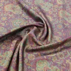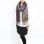糸そのものの美しい光沢感とジャカード織機で製作された独創的なデザインが相まった他にはないシルクストールに仕上がっています。