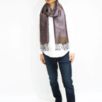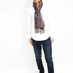 スタンダートな大判サイズで巻いても羽織っても、どちらも使いやすいタイプです。特に羽織は全体の印象が大きく変わります。