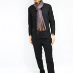 糸そのものの美しい光沢感とジャカード織機で製作された独創的なデザインが相まった他にはないシルクストールに仕上がっています。