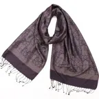 糸そのものの美しい光沢感とジャカード織機で製作された独創的なデザインが相まった他にはないシルクストールに仕上がっています。