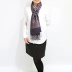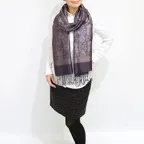 スタンダートな大判サイズで巻いても羽織っても、どちらも使いやすいタイプです。特に羽織は全体の印象が大きく変わります。