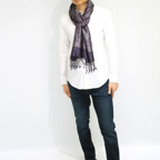 スタンダートな大判サイズで巻いても羽織っても、どちらも使いやすいタイプです。特に羽織は全体の印象が大きく変わります。