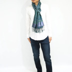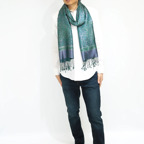 スタンダートな大判サイズで巻いても羽織っても、どちらも使いやすいタイプです。特に羽織は全体の印象が大きく変わります。
