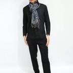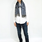 スタンダードな大判サイズで、首に巻くことはもちろん、室内でのひざ掛けにも、肩から羽織る使い方もできます。特に羽織りは、パッと華やかにエレガントな雰囲気に変わります。上半身を覆えるので、着ている服を気にせず合わせることができます。忙しい朝もコーディネートを気にする必要はありません。