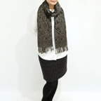 スタンダードな大判サイズで、首に巻くことはもちろん、室内でのひざ掛けにも、肩から羽織る使い方もできます。特に羽織りは、パッと華やかにエレガントな雰囲気に変わります。上半身を覆えるので、着ている服を気にせず合わせることができます。忙しい朝もコーディネートを気にする必要はありません。