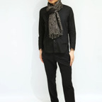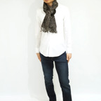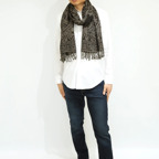 スタンダードな大判サイズで、首に巻くことはもちろん、室内でのひざ掛けにも、肩から羽織る使い方もできます。特に羽織りは、パッと華やかにエレガントな雰囲気に変わります。上半身を覆えるので、着ている服を気にせず合わせることができます。忙しい朝もコーディネートを気にする必要はありません。