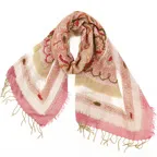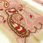 立体感のある刺繍と透け感のある軽やかな質感。ふんわり華やかなウールストールです。
