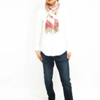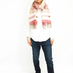 スタンダードな大判サイズで、首に巻くことはもちろん、室内でのひざ掛けにも、肩から羽織る使い方もできます。特に羽織りは、パッと華やかにエレガントな雰囲気に変わります。上半身を覆えるので、着ている服を気にせず合わせることができます。忙しい朝もコーディネートを気にする必要はありません。