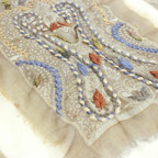透け感のある生地に施された立体感のある刺繍が美しく、装いのアクセントに最適です。特にカジュアルな装いと相性がよくなっています。