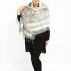 スタンダードな大判サイズで、首に巻くことはもちろん、室内でのひざ掛けにも、肩から羽織る使い方もできます。特に羽織りは、パッと華やかにエレガントな雰囲気に変わります。上半身を覆えるので、着ている服を気にせず合わせることができます。忙しい朝もコーディネートを気にする必要はありません。
