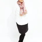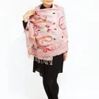 スタンダードな大判サイズで、首に巻くことはもちろん、室内でのひざ掛けにも、肩から羽織る使い方もできます。特に羽織りは、パッと華やかにエレガントな雰囲気に変わります。上半身を覆えるので、着ている服を気にせず合わせることができます。忙しい朝もコーディネートを気にする必要はありません。