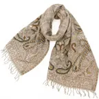 ベースカラーと同トーンでまとめられた統一感のある立体刺繍ストール。巻きはもちろん、羽織物やひざ掛けとしても重宝します。