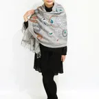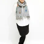 スタンダードな大判サイズで、首に巻くことはもちろん、室内でのひざ掛けにも、肩から羽織る使い方もできます。特に羽織りは、パッと華やかにエレガントな雰囲気に変わります。上半身を覆えるので、着ている服を気にせず合わせることができます。忙しい朝もコーディネートを気にする必要はありません。