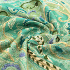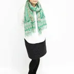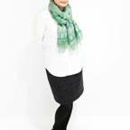 スタンダードな大判サイズで、首に巻くことはもちろん、室内でのひざ掛けにも、肩から羽織る使い方もできます。特に羽織りは、パッと華やかにエレガントな雰囲気に変わります。上半身を覆えるので、着ている服を気にせず合わせることができます。忙しい朝もコーディネートを気にする必要はありません。