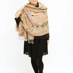 スタンダードな大判サイズで、首に巻くことはもちろん、室内でのひざ掛けにも、肩から羽織る使い方もできます。特に羽織りは、パッと華やかにエレガントな雰囲気に変わります。上半身を覆えるので、着ている服を気にせず合わせることができます。忙しい朝もコーディネートを気にする必要はありません。
