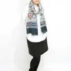 生地感よりカジュアルな普段使いにも、少しフォーマルなシーンでも使いやすいタイプです。スタイルや場所を問わず合わせることができる優れたストールです。