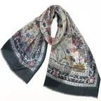 生地感よりカジュアルな普段使いにも、少しフォーマルなシーンでも使いやすいタイプです。スタイルや場所を問わず合わせることができる優れたストールです。