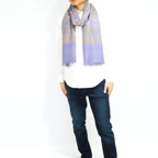 うっとりするようなやわらかさと、ほのかな光沢が魅力のパシュミナ素材。極上素材をさらりとまとう、煌めき仕立ての高級ストールです。