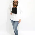 全面に施されたアーリ刺繍は誰もが振り返るほどの美しさ。ひとたび羽織ればパッと華やかにゴージャスな雰囲気に変わります。上半身を覆えるので、着ている服を気にせず合わせることができます。