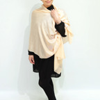 このカシミヤストールには最も繊細なインドカシミール地方ラダック産カシミヤ糸(パシュミナ)が使われています。そのため手織りカシミアストールの中でも最も目が細く繊細な生地となっています。薄くて軽くてやわらかい最上級の一枚です。