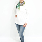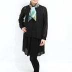 65cm×65cmの小判スカーフで、アスコットタイのようにシャツやブラウスの中におさめて使うこともできます。室内でも巻いたままでいられるので使いやすくなっています。