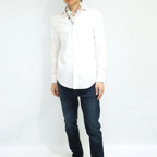 65cm×65cmの小判スカーフで、アスコットタイのようにシャツやブラウスの中におさめて使うこともできます。室内でも巻いたままでいられるので使いやすくなっています。