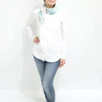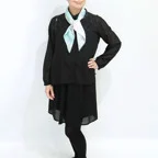 65cm×65cmの小判スカーフで、アスコットタイのようにシャツやブラウスの中におさめて使うこともできます。室内でも巻いたままでいられるので使いやすくなっています。