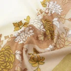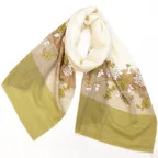 全面に施されたアーリ刺繍が美しく、品の良い女性らしい装いを叶えてくれます。カジュアルな普段使いはもちろん、フォーマルなシーンにも使いやすく、さらに和装とも相性が非常に良くなっています。スタイルや場所を問わず合わせることができる優れたストールです。