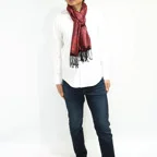 シルク100%の品の良い光沢感と美しいドレープが相まって、フォーマルな場面やパーティーシーンで大活躍します。シャツやブラウス、ドレスやスーツ、ジャケットなどのトップスと相性が抜群で、一巻きでいつものファッションを格上げできます。