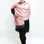 しなやかな風合い、美しい艶、極上シルクのジャカードストール。優しい色使いで装いの程よいアクセントにぴったりです!