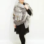 大判サイズのストールで肩から羽織る使い方もできます。春夏の日除けや室内の冷房対策としても使いやすくなっています。