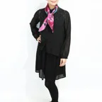 65cm×65cmの小判スカーフで、アスコットタイのようにシャツやブラウスの中におさめて使うこともできます。室内でも巻いたままでいられるので使いやすくなっています。