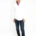 65cm×65cmの小判スカーフで、アスコットタイのようにシャツやブラウスの中におさめて使うこともできます。室内でも巻いたままでいられるので使いやすくなっています。