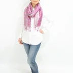 さらにアクセントとしてならカジュアルな装いにも合わせやすい、とても使い勝手の良いストールです。